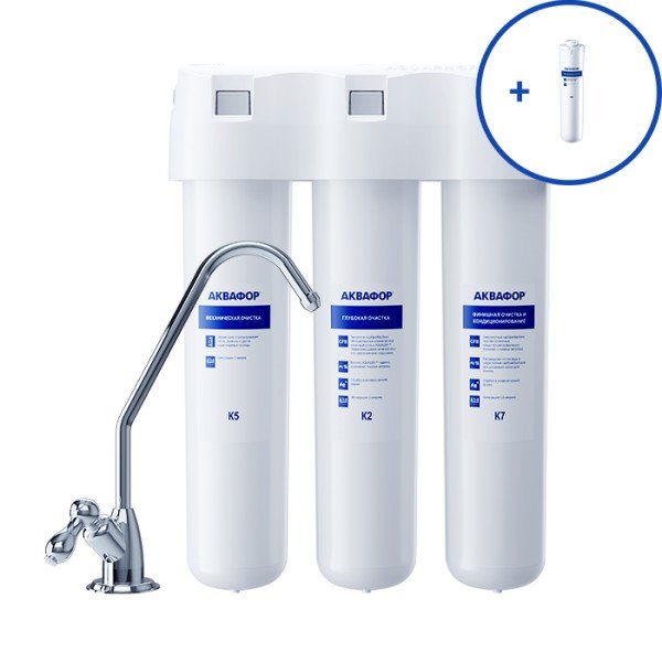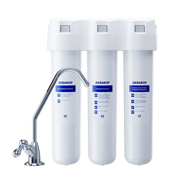 Обратноосмотические фильтры используются для абсолютной защиты от накипи, т.к. полностью устраняют соли жесткости из воды.нетЧисло ступеней очисткиКартриджи последовательно очищают воду и от видимых примесей, и от растворенных. Первый картридж задерживает более крупные частицы, а каждый последующий - более мелкие. Чем больше ступеней - тем лучше фильтр очистит воду: поймает более мелкие видимые частицы ржавчины, песка и ила, успеет захватить из воды максимум растворенных примесей - хлора, нитратов, тяжелых металлов и других.3МинерализацияПроисходит после финишной очистки воды. Необходима прежде всего в фильтре обратного осмоса, поскольку такой фильтр полностью устраняет из воды все примеси, в том числе минералы. Минералы добавляются в оптимальной концентрации - для пользы и привычного вкуса воды.нетПостфильтрацияФинальный этап очистки воды: картриджи постфильтрации удаляют самые мелкие механические частицы и кондиционируют воду, придавая ей более приятный вкус.нетНакопительная емкостьОбычно нужна в фильтрах обратного осмоса. Глубокая фильтрация требует времени. Чтобы Вам не приходилось ждать, пока вода наберется в чайник или кастрюлю, почти во всех моделях используется накопительный бак для чистой воды или другая емкость. В стандартном фильтре обратного осмоса под мойку воды в баке достаточно для семьи из 5-6 человек.нетФильтрующий модуль в комплектедаОтдельный крандаДавление в водопроводе не более, атмМаксимальное давление воды на входе в систему, при котором возможна стабильная работа фильтра.6,5Ширина, смОбратите внимание на габариты фильтра, и измерьте, сколько свободного пространства в предполагаемом месте установки.26,0Глубина, смОбратите внимание на габариты фильтра, и измерьте, сколько свободного пространства в предполагаемом месте установки.9,0Защита корпуса от гидроударовдаИсходная водаЖесткая вода – вода с избытком минеральных солей. От нее появляется накипь в чайнике, известковый налет на сантехнике и разводы на посуде. Мягкая вода – та, в которой мало минеральных солей. Нет накипи в чайнике и разводов на посуде. Фильтры для мутной воды и фильтры от ржавчины, как правило, имеют несколько стадий очистки и дополнительный полипропиленовый картридж. Он задерживает механические частицы ила, песка и ржавчины и защищает картриджи более глубокой очистки.мягкаяУстраняет мутностьМутность водопроводной воды может говорить о том, что в ней много мелких механических частиц. Важно, чтобы в фильтре был установлен дополнительные картридж механической предфильтрации (полипропиленовый) - он продлит жизнь остальным картриджам более тонкой очистки.даУстраняет ржавчину, бурый осадокЛюбой фильтр под мойку удалит из воды крупные и мелкие частицы ржавчины. Некоторые фильтры имеют повышенный ресурс по железу: они дольше служат в такой воде, поскольку лучше подходят для удаления из воды железа и механических частиц ржавчины.нетЗащита от бактерийВсе проточные фильтры в той или иной степени защищают от бактерий. Например, добавление серебра препятствует их размножению. Это стандартная степень защиты. Если в семье есть дети, пожилые люди или аллергики, воду рекомендуется обеззараживать, то есть полностью удалять микроорганизмы. Повышенную защиту от бактерий дают фильтры с половолоконной мембраной. Это пучок труб