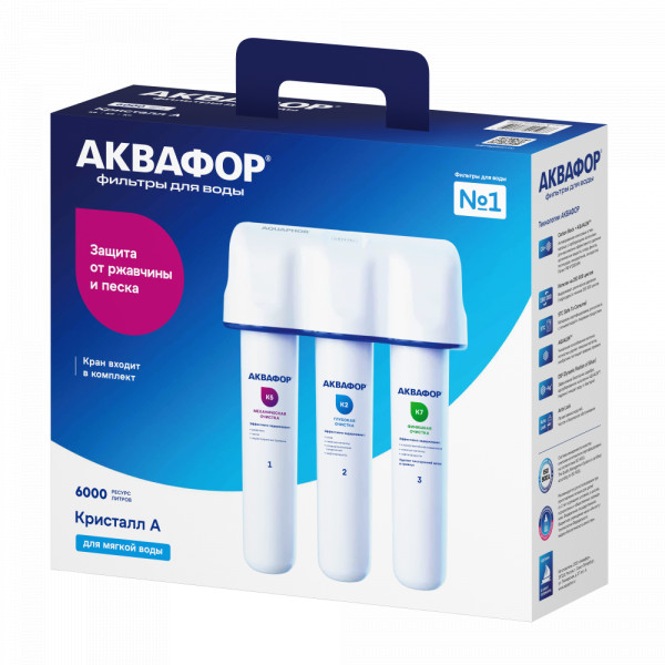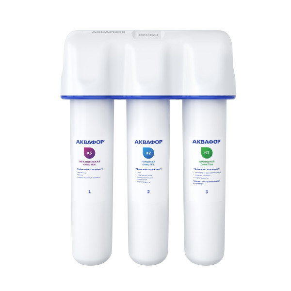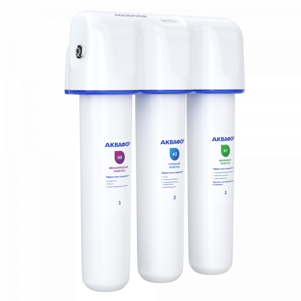 Обратноосмотические фильтры используются для абсолютной защиты от накипи, т.к. полностью устраняют соли жесткости из воды.нетЧисло ступеней очисткиКартриджи последовательно очищают воду и от видимых примесей, и от растворенных. Первый картридж задерживает более крупные частицы, а каждый последующий - более мелкие. Чем больше ступеней - тем лучше фильтр очистит воду: поймает более мелкие видимые частицы ржавчины, песка и ила, успеет захватить из воды максимум растворенных примесей - хлора, нитратов, тяжелых металлов и других.3МинерализацияПроисходит после финишной очистки воды. Необходима прежде всего в фильтре обратного осмоса, поскольку такой фильтр полностью устраняет из воды все примеси, в том числе минералы. Минералы добавляются в оптимальной концентрации - для пользы и привычного вкуса воды.нетПостфильтрацияФинальный этап очистки воды: картриджи постфильтрации удаляют самые мелкие механические частицы и кондиционируют воду, придавая ей более приятный вкус.нетНакопительная емкостьОбычно нужна в фильтрах обратного осмоса. Глубокая фильтрация требует времени. Чтобы Вам не приходилось ждать, пока вода наберется в чайник или кастрюлю, почти во всех моделях используется накопительный бак для чистой воды или другая емкость. В стандартном фильтре обратного осмоса под мойку воды в баке достаточно для семьи из 5-6 человек.нетФильтрующий модуль в комплектедаДавление в водопроводе не более, атмМаксимальное давление воды на входе в систему, при котором возможна стабильная работа фильтра.6,5Ширина, смОбратите внимание на габариты фильтра, и измерьте, сколько свободного пространства в предполагаемом месте установки.28,0Глубина, смОбратите внимание на габариты фильтра, и измерьте, сколько свободного пространства в предполагаемом месте установки.10,5Защита корпуса от гидроударовдаИсходная водаЖесткая вода – вода с избытком минеральных солей. От нее появляется накипь в чайнике, известковый налет на сантехнике и разводы на посуде. Мягкая вода – та, в которой мало минеральных солей. Нет накипи в чайнике и разводов на посуде. Фильтры для мутной воды и фильтры от ржавчины, как правило, имеют несколько стадий очистки и дополнительный полипропиленовый картридж. Он задерживает механические частицы ила, песка и ржавчины и защищает картриджи более глубокой очистки.мягкаяУстраняет мутностьМутность водопроводной воды может говорить о том, что в ней много мелких механических частиц. Важно, чтобы в фильтре был установлен дополнительные картридж механической предфильтрации (полипропиленовый) - он продлит жизнь остальным картриджам более тонкой очистки.даУстраняет ржавчину, бурый осадокЛюбой фильтр под мойку удалит из воды крупные и мелкие частицы ржавчины. Некоторые фильтры имеют повышенный ресурс по железу: они дольше служат в такой воде, поскольку лучше подходят для удаления из воды железа и механических частиц ржавчины.нетЗащита от бактерийВсе проточные фильтры в той или иной степени защищают от бактерий. Например, добавление серебра препятствует их размножению. Это стандартная степень защиты. Если в семье есть дети, пожилые люди или аллергики, воду рекомендуется обеззараживать, то есть полностью удалять микроорганизмы. Повышенную защиту от бактерий дают фильтры с половолоконной мембраной. Это пучок трубок с порами разме