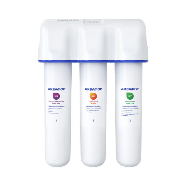 Обратноосмотические фильтры используются для абсолютной защиты от накипи, т.к. полностью устраняют соли жесткости из воды.нетЧисло ступеней очисткиКартриджи последовательно очищают воду и от видимых примесей, и от растворенных. Первый картридж задерживает более крупные частицы, а каждый последующий - более мелкие. Чем больше ступеней - тем лучше фильтр очистит воду: поймает более мелкие видимые частицы ржавчины, песка и ила, успеет захватить из воды максимум растворенных примесей - хлора, нитратов, тяжелых металлов и других.3МинерализацияПроисходит после финишной очистки воды. Необходима прежде всего в фильтре обратного осмоса, поскольку такой фильтр полностью устраняет из воды все примеси, в том числе минералы. Минералы добавляются в оптимальной концентрации - для пользы и привычного вкуса воды.нетПостфильтрацияФинальный этап очистки воды: картриджи постфильтрации удаляют самые мелкие механические частицы и кондиционируют воду, придавая ей более приятный вкус.нетНакопительная емкостьОбычно нужна в фильтрах обратного осмоса. Глубокая фильтрация требует времени. Чтобы Вам не приходилось ждать, пока вода наберется в чайник или кастрюлю, почти во всех моделях используется накопительный бак для чистой воды или другая емкость. В стандартном фильтре обратного осмоса под мойку воды в баке достаточно для семьи из 5-6 человек.нетФильтрующий модуль в комплектедаОтдельный крандаДавление в водопроводе не более, атмМаксимальное давление воды на входе в систему, при котором возможна стабильная работа фильтра.6,5Ширина, смОбратите внимание на габариты фильтра, и измерьте, сколько свободного пространства в предполагаемом месте установки.26,0Глубина, смОбратите внимание на габариты фильтра, и измерьте, сколько свободного пространства в предполагаемом месте установки.9,0Защита корпуса от гидроударовдаИсходная водаЖесткая вода – вода с избытком минеральных солей. От нее появляется накипь в чайнике, известковый налет на сантехнике и разводы на посуде. Мягкая вода – та, в которой мало минеральных солей. Нет накипи в чайнике и разводов на посуде. Фильтры для мутной воды и фильтры от ржавчины, как правило, имеют несколько стадий очистки и дополнительный полипропиленовый картридж. Он задерживает механические частицы ила, песка и ржавчины и защищает картриджи более глубокой очистки.жёсткаяУстраняет мутностьМутность водопроводной воды может говорить о том, что в ней много мелких механических частиц. Важно, чтобы в фильтре был установлен дополнительные картридж механической предфильтрации (полипропиленовый) - он продлит жизнь остальным картриджам более тонкой очистки.нетУстраняет ржавчину, бурый осадокЛюбой фильтр под мойку удалит из воды крупные и мелкие частицы ржавчины. Некоторые фильтры имеют повышенный ресурс по железу: они дольше служат в такой воде, поскольку лучше подходят для удаления из воды железа и механических частиц ржавчины.нетЗащита от бактерийВсе проточные фильтры в той или иной степени защищают от бактерий. Например, добавление серебра препятствует их размножению. Это стандартная степень защиты. Если в семье есть дети, пожилые люди или аллергики, воду рекомендуется обеззараживать, то есть полностью удалять микроорганизмы. Повышенную защиту от бактерий дают фильтры с половолоконной мембраной. Это пучок тр