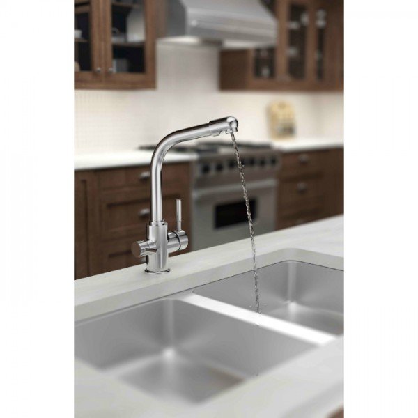 Кухонный смеситель из нержавеющей стали для водопроводной и очищенной питьевой воды.