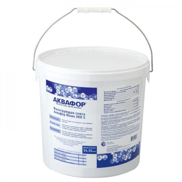 Аквафор Юник - смесь специально подобранных ионообменных и инертных материалов, скомпонованных в определенных соотношениях в единую фильтрующую среду. Инертный слой, задерживающий крупные примеси в верхнем слое, предотвращает вымывание мелкозернистых фракций фильтрующей смеси в дренаж во время регенерации и обратной промывки фильтра, защищает управляющий клапан от попадания в него частиц смеси, что гарантированно продлевает срок эксплуатации системы. Основным активным компонентом смеси является катион-анионообменный комплекс, в котором объединены различные по составу и функциональному назначению смолы. В результате такого объединения увеличивается плотность фильтрующего материала, площадь контакта среды с водой и эффективность работы смеси.