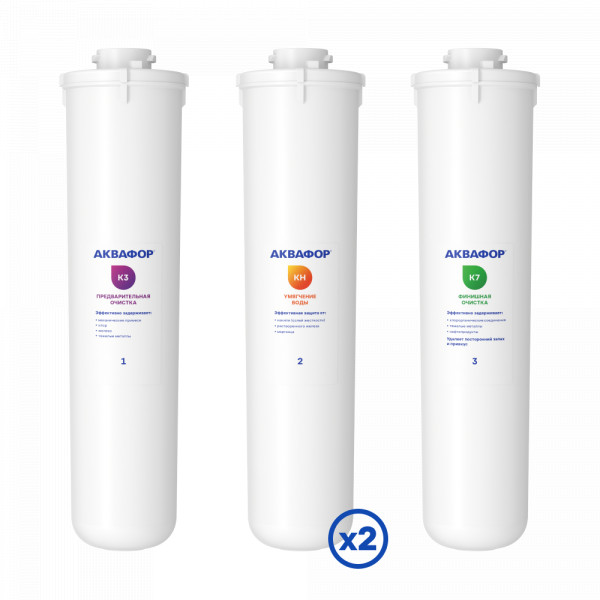 Комплект сменных модулей глубокой очистки и умягчения воды низкой и средней жесткости. Эффективно снижает появление белого налета, модуль с ионообменной смолой подлежит регенерации. В зависимости от жесткости исходной воды, регенерацию потребуется проводить в срок до 3х месяцев.