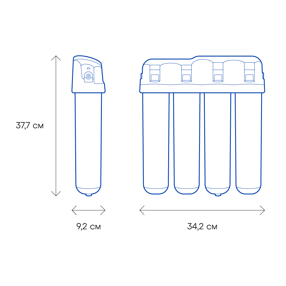 Обратноосмотические фильтры используются для абсолютной защиты от накипи, т.к. полностью устраняют соли жесткости из воды.нетЧисло ступеней очисткиКартриджи последовательно очищают воду и от видимых примесей, и от растворенных. Первый картридж задерживает более крупные частицы, а каждый последующий - более мелкие. Чем больше ступеней - тем лучше фильтр очистит воду: поймает более мелкие видимые частицы ржавчины, песка и ила, успеет захватить из воды максимум растворенных примесей - хлора, нитратов, тяжелых металлов и других.5МинерализацияПроисходит после финишной очистки воды. Необходима прежде всего в фильтре обратного осмоса, поскольку такой фильтр полностью устраняет из воды все примеси, в том числе минералы. Минералы добавляются в оптимальной концентрации - для пользы и привычного вкуса воды.нетПостфильтрацияФинальный этап очистки воды: картриджи постфильтрации удаляют самые мелкие механические частицы и кондиционируют воду, придавая ей более приятный вкус.нетНакопительная емкостьОбычно нужна в фильтрах обратного осмоса. Глубокая фильтрация требует времени. Чтобы Вам не приходилось ждать, пока вода наберется в чайник или кастрюлю, почти во всех моделях используется накопительный бак для чистой воды или другая емкость. В стандартном фильтре обратного осмоса под мойку воды в баке достаточно для семьи из 5-6 человек.нетФильтрующий модуль в комплектедаОтдельный крандаДавление в водопроводе не более, атмМаксимальное давление воды на входе в систему, при котором возможна стабильная работа фильтра.6,5Ширина, смОбратите внимание на габариты фильтра, и измерьте, сколько свободного пространства в предполагаемом месте установки.37,7Глубина, смОбратите внимание на габариты фильтра, и измерьте, сколько свободного пространства в предполагаемом месте установки.9,2Защита корпуса от гидроударовдаИсходная водаЖесткая вода – вода с избытком минеральных солей. От нее появляется накипь в чайнике, известковый налет на сантехнике и разводы на посуде. Мягкая вода – та, в которой мало минеральных солей. Нет накипи в чайнике и разводов на посуде. Фильтры для мутной воды и фильтры от ржавчины, как правило, имеют несколько стадий очистки и дополнительный полипропиленовый картридж. Он задерживает механические частицы ила, песка и ржавчины и защищает картриджи более глубокой очистки.жёсткаяУстраняет мутностьМутность водопроводной воды может говорить о том, что в ней много мелких механических частиц. Важно, чтобы в фильтре был установлен дополнительные картридж механической предфильтрации (полипропиленовый) - он продлит жизнь остальным картриджам более тонкой очистки.даУстраняет ржавчину, бурый осадокЛюбой фильтр под мойку удалит из воды крупные и мелкие частицы ржавчины. Некоторые фильтры имеют повышенный ресурс по железу: они дольше служат в такой воде, поскольку лучше подходят для удаления из воды железа и механических частиц ржавчины.даЗащита от бактерийВсе проточные фильтры в той или иной степени защищают от бактерий. Например, добавление серебра препятствует их размножению. Это стандартная степень защиты. Если в семье есть дети, пожилые люди или аллергики, воду рекомендуется обеззараживать, то есть полностью удалять микроорганизмы. Повышенную защиту от бактерий дают фильтры с половолоконной мембраной. Это пучок труб